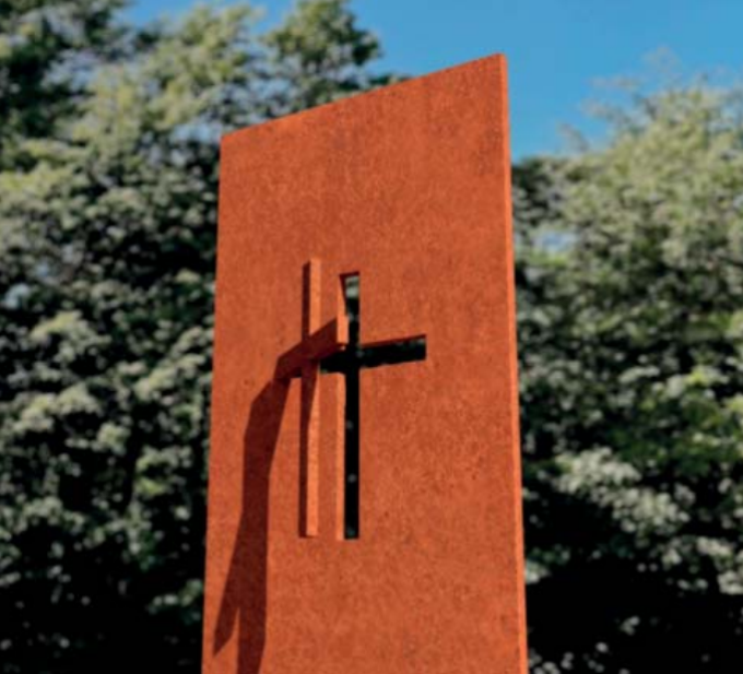Co je KŘÍŽovatka: Je to socha z oceli široká jeden a vysoká tři metry při tloušťce 5 cm, kotvená do skrytého betonového základu. Místo budou vytyčovat triangulační kameny.
